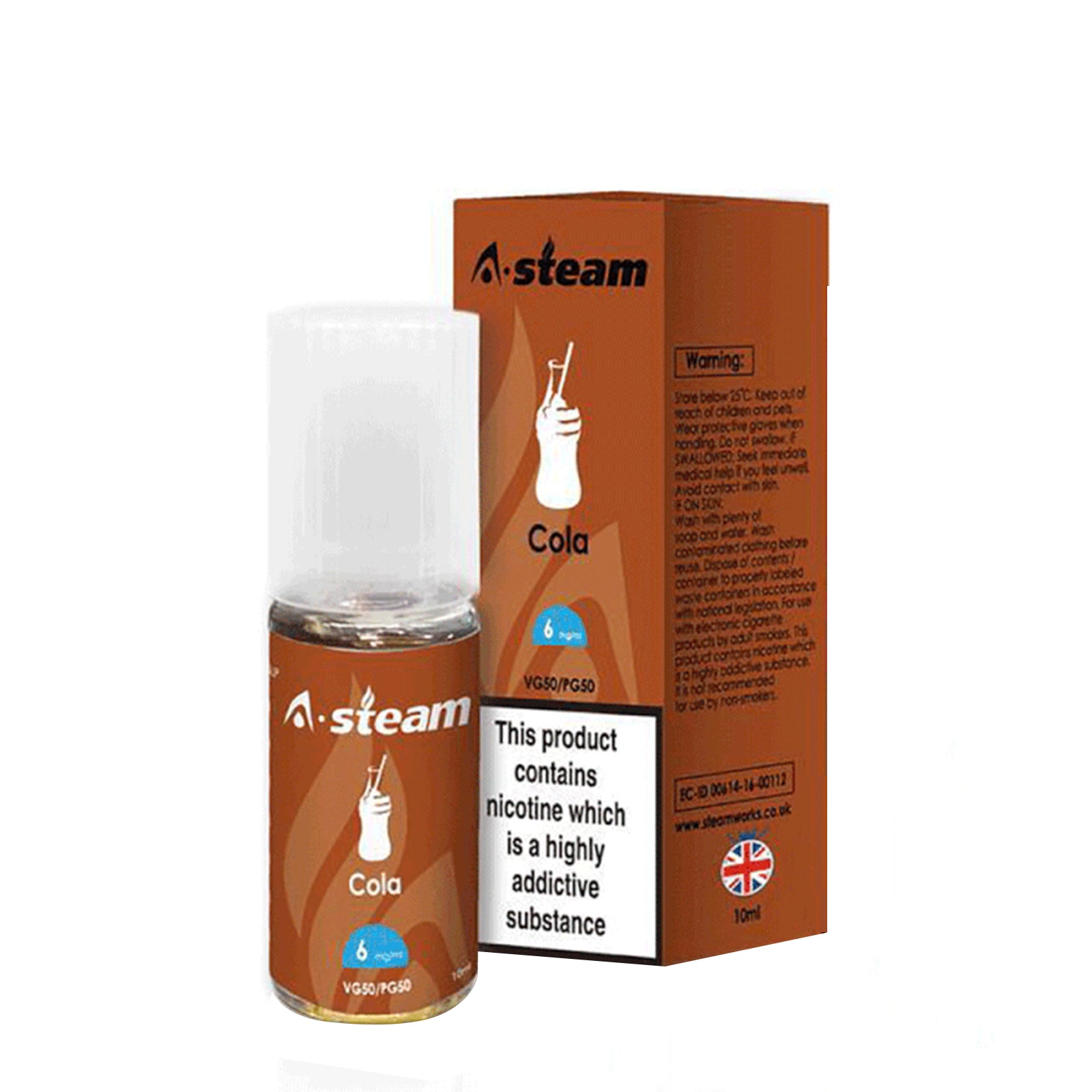 A STEAM E LIQUID 10 x 10ml 50/50 VGPG COLA 3mg, 6mg 12mg, 18mg