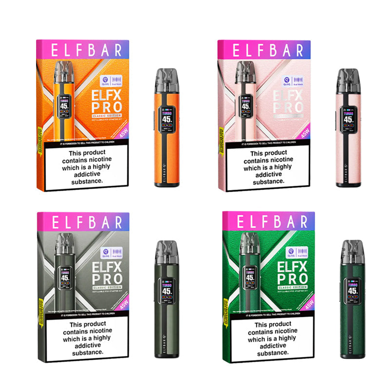 Introducing the Elf Bar ELFX Pro Classic Edition, a sleek and versatile vape device designed for MTL (Mouth-to-Lung) and DTL (Direct-to-Lung) enthusiasts. Powered by a robust built-in 1200mAh battery, this compact device offers a power range of 5W-45W using dual modes, ensuring a customizable experience to suit your preferred vaping style. The innovative touchscreen display provides effortless control, allowing you to adjust settings with precision, while the inhale activation feature makes operation seamless and intuitive. With adjustable airflow and 2ml refillable pods fitted with dual mesh coils, the Elfx Pro Classic Edition delivers exceptional flavor and vapor production, packaged in a user-friendly and stylish design.