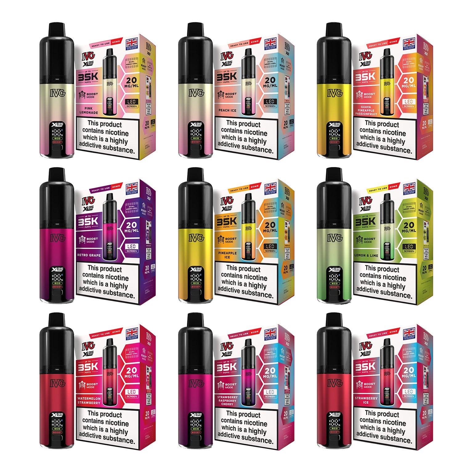 The IVG XL35 is an ideal choice if you are looking for a big puff vape that lasts for longer between pod replacements. The built-in rechargeable 1000mAh battery should last most vapers for an entire day. The kit comes with a 2ml pod and two 10ml containers, all of which are prefilled with 20mg nic salt e-liquid, and these can be replaced when empty. This means the kit can deliver up to 35,000 puffs out of the box, thanks to the included e-liquid. Once the pods and containers are empty, just swap them out for a new refill pod. Setting up the IVG XL35 is straightforward. First, take the two Big prefilled containers and attach them to the 2ml prefilled pod, then insert the assembled refill into the device. From there, just inhale to vape. Swap between modes or lock the device at the push of a button. In Eco Mode, the kit will create less vapor and conserve battery power, allowing it to provide up to 35,000 puffs. Or, use Boost Mode, which will create larger amounts of vapor. The screen on the device displays battery charge level, vaping mode and lock status. The included prefilled pod and containers are filled with nic salt e-liquid. Nic salt is absorbed quickly by the body in order to satisfy cravings rapidly with a smooth throat hit. With a built-in 1.1 Ohm dual mesh coil, this kit is designed for MTL (Mouth To Lung) vaping, offering an inhale that feels like a cigarette. Mesh coils heat e-liquid fast, which improves the flavor. There are a variety of options to pick from, including fruit, soda and ice blends.