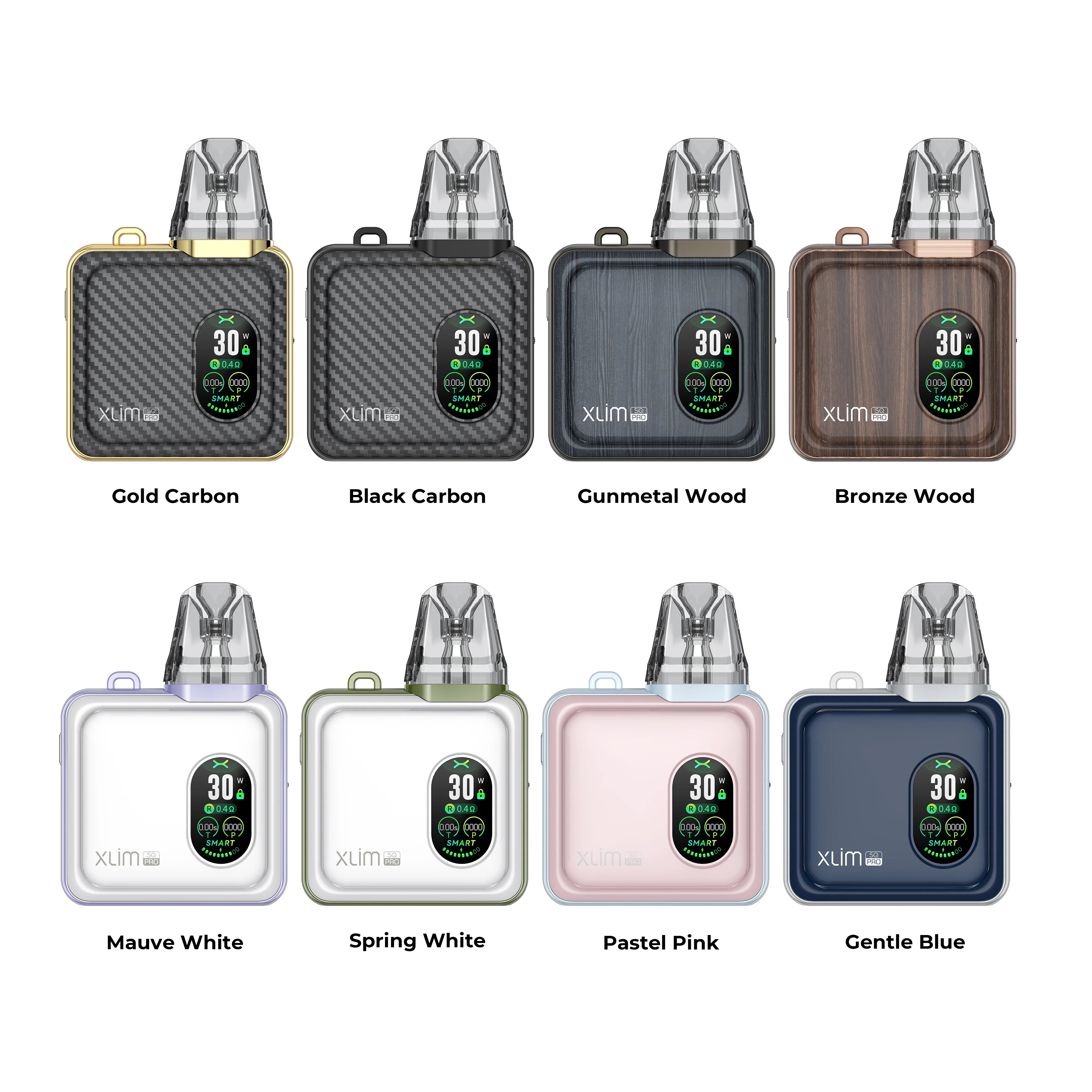 OXVA Xlim SQ Pro Pod System Kit comes with 1200mAh built-in battery, 30W max output power. It features 2ml pod capacity, highly leak-resistant and top filling systems. With the designs of 0.96-inch TFT color screen and optional dynamic themes, it will bring an enriching visual vaping experience for you. OXVA Xlim SQ Pro Kit supports Smart or Power mode. The Smart Mode precisely and automatically matches the optimal power, and the Power Mode allows you to manually adjust the power to your desired strength. OXVA Xlim SQ Pro is compatible with Xlim Series Cartridges.