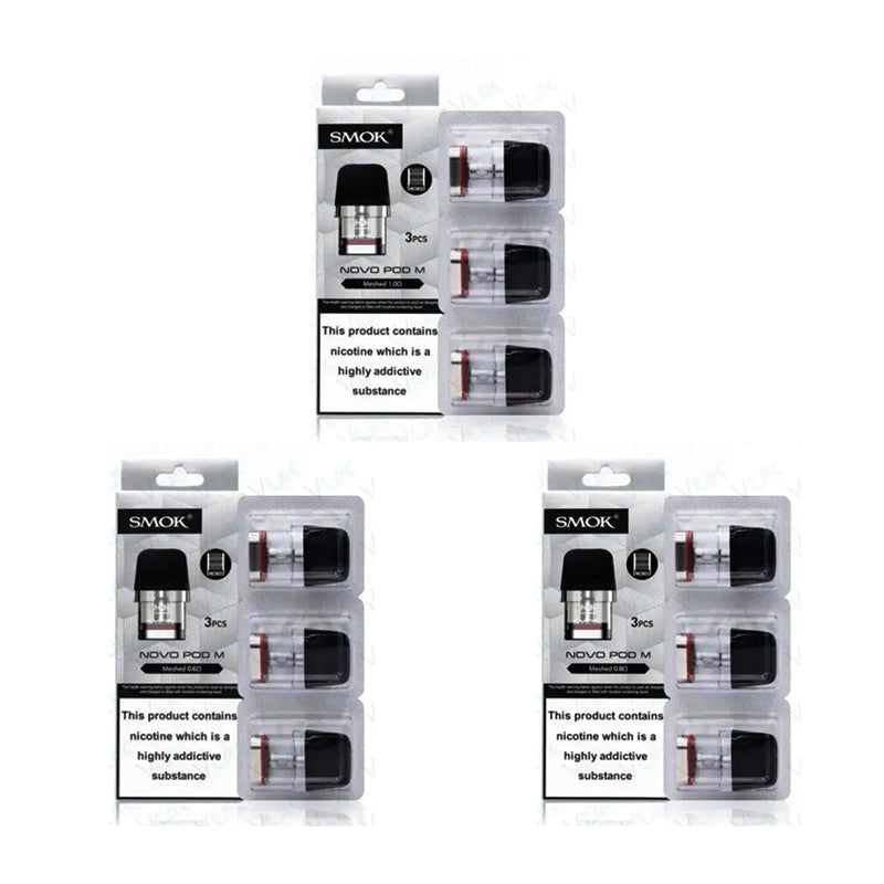The Smok Novo M pods are designed (Top Filling) for use with the Novo GT and Novo GT Box kit. They feature a 2ml capacity and house built-in mesh coils. Available in multiple resistances, you can swap between MTL (Mouth To Lung) and RDTL (Restricted Direct To Lung) vaping, depending on which pod you choose. Topping up your Novo pods is quick and easy. Simply remove the mouthpiece cap to reveal the e-liquid port and fill with your favorite e-liquid. From here, pop the cap back on and insert the pod into your device. If you're after a more discreet MTL vape, we recommend going for the 0.8 Ohm or 1.0 Ohm options. The O.6 Ohm pod will deliver a more airy RDTL inhale. No matter which pod you go for, pair it up with 50% VG vape juice for best results.