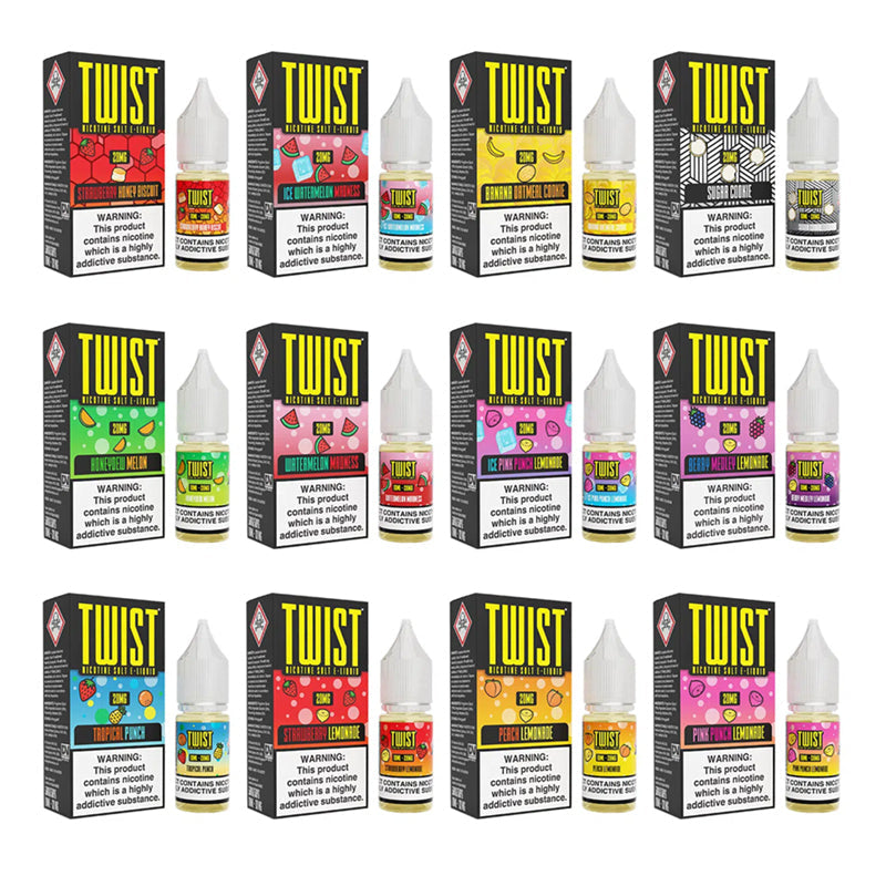 Twist 10ml Nic Salts comes in a 10ml of 10mg/20mg Nic salt strength, which gives you a smooth throat hit due to Nic salts being less harsh when vaping, allowing you to vape at a higher strength. Twist 10ml Nic salts is perfect for those seeking flavor with MTL vaping, thanks to their 50% VG concentration. For optimal enjoyment, using a pod vapes device is recommended. Twist 10ml Nic Salts boast a premium selection including Arctic Cool Mint, Banana Oatmeal, Berry Medley Lemonade, Grape Berry, Honeydew Melon, Ice Pink Punch Lemonade, and more, celebrated for delivering an unparalleled taste experience. Twist 10ml Nic Salts are available in two nicotine strengths: 10mg and 20mg. The use of Nic salts ensures a smoother throat hit, making higher nicotine strengths more palatable.