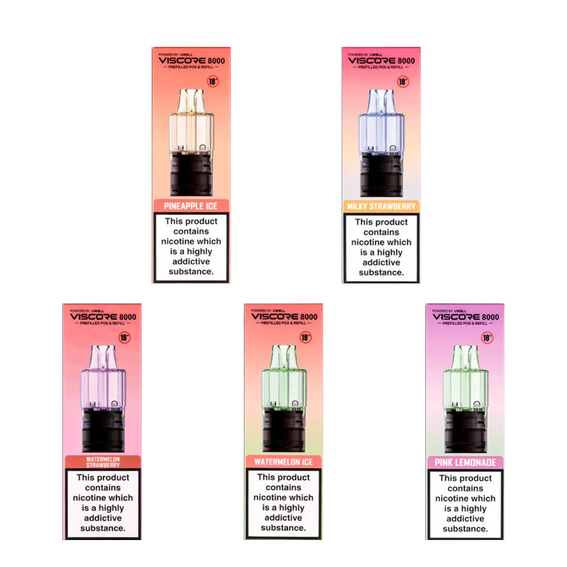 Uwell Viscore 8000 20mg Prefilled Replacement Pods deliver a consistent and satisfying vaping experience with a precise 20mg nicotine strength. Designed for compatibility with the Viscore 8000 device, these pods ensure easy installation and reliable performance. Each pod is prefilled with high-quality e-liquid, providing smooth flavor and optimal vapor production for users seeking convenience without compromising on quality. Ideal for those who value efficiency and consistency in their vaping routine. Featuring a prefilled 2 ml e-liquid pod with a built-in 0.8Ω Mesh coil and accompanying 10 ml e-liquid refill cartridge, when combined, these pod modules are designed to provide up to approximately 8000 TPD-compliant puffs of smooth, delicious nicotine salt flavor with 20 mg (2%) nicotine strength. Choose from ten flavors and follow the simple setup instructions to ensure a hassle-free, leak-free mouth-to-lung (MTL) vaping experience.
