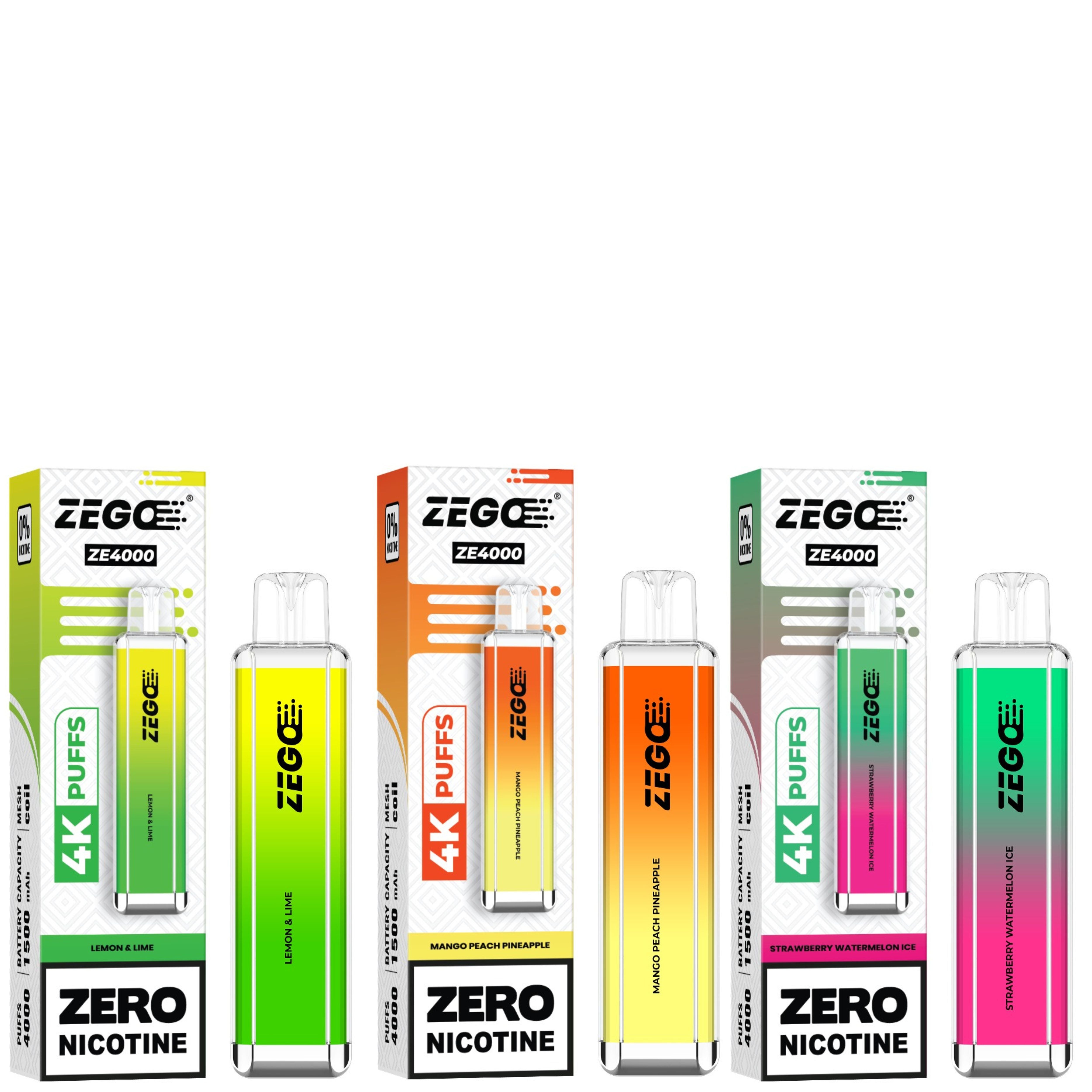 Experience long-lasting and satisfying draws with the Zego 4000 Disposable Pod Device. This all-in-one device requires no refilling or recharging and is free of nicotine. Enjoy the convenient and hassle-free vaping experience with this sleek and modern device. Zego ZE 4000 is something to satisfy all of your cravings and equipped with a dual 1.2 ohm mesh coil and a super-efficient 1500 mAh battery means the quality and enjoyment provided by the ZEGO disposable vape range is unrivaled; don’t miss out on this one of a kind vaping experience. The ZEGO ZE 4000 is literally a re-branded ZEGO ZE 4000. Therefore, quality and satisfaction is sure to be there.