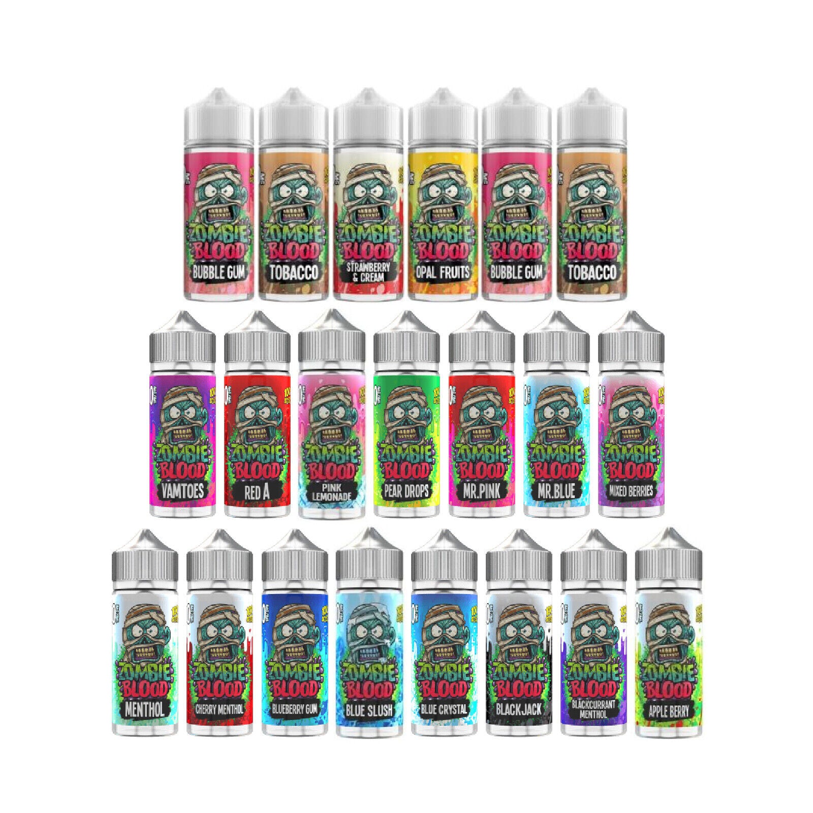 Zombie Blood 100ml E liquid Vape juice 70/30 VG/PG. Zombie Blood e-juice comes in a 120ml bottle with 0mg nicotine strength and is one of many E-Liquids, which now comes in a format known as ‘Shake & Vape’.